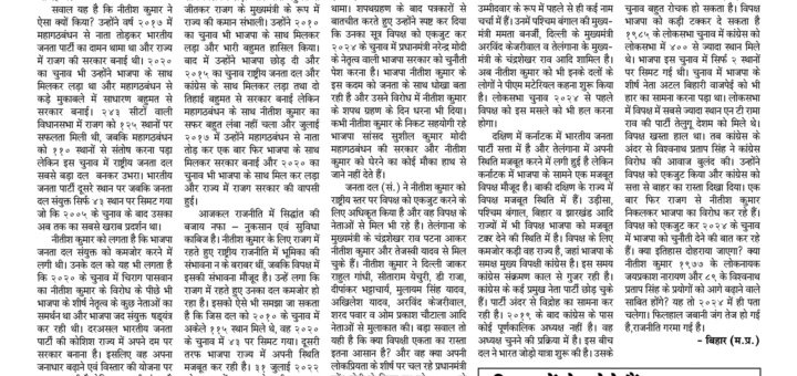 9 अगस्त, 2022 को एक नाटकीय घटनाक्रम में नीतीश कुमार ने एनडीए से नाता तोड़कर मुख्यमंत्री पद से इस्तीफा दे दिया और महागठबंधन में शामिल हो गए। 10 अगस्त को उन्होंने राज्य में आठवीं...